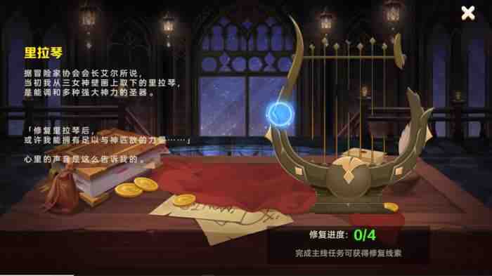 结束第一章的剧情(plot)后,冒险者们会获得【里拉琴】的碎片,用来修復里拉琴。