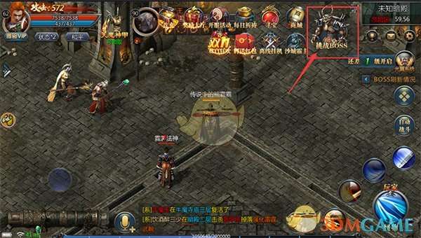 1、在游戏中点击图中所示按钮,即(ji)可开(kai)始(shi)挑战boss