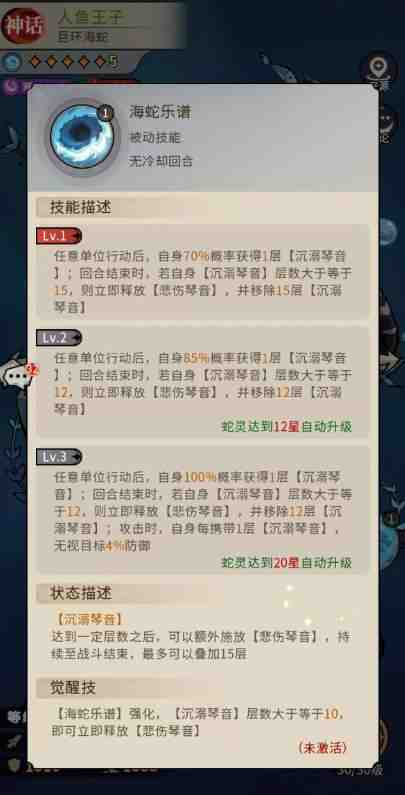 最后海蛇乐谱被动当中,是只要有队内任意队友行动,此时人鱼王子自身会(hui)有(you)70%的概率获得1层沉溺琴音,且在这个行动的回合结束之后,如果自身的沉溺琴音层数大于等于15,那么人鱼王子则会立即释放悲伤琴音技能,移除掉身上的15层沉溺琴音,后期升级之后还会在攻(gong)击(ji)时,让这里每携带1层的沉溺琴音带来无视目标4%防御的增益,沉溺琴音达的效果(xiaoguo)就是在(zai)其(qi)中(zhong)到一定(must)层数之后,可以额外施放悲伤琴音,这个效果(xiaoguo)会一直持续(continued)至战斗结束,最多的情况下(the case)是可以叠加15层,后期直到觉醒的时候(shihou),这里的技能强化之后就会变成沉溺琴音层数只要是大于等于10,那么此时的人鱼王子就可以立即释放悲伤琴音,不用再等到15层了。