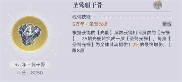 根据獲得的【光能】层数转化为【光栅】,25层光栅可转化为1层【圣鹫光栅】,每层为全体武魂提供1.2%最终(zhong)增伤,上限8层。