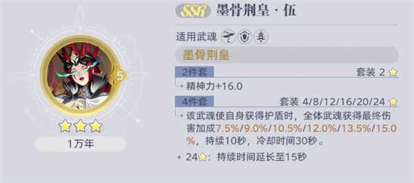 适用场景:百搭辅助型套装,适合能高频释放(freed)奥义的武魂,为全队提供稳(wen)定(ding)增伤。