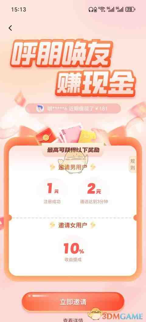 5、用户(yonghu)还可以(huankeyi)邀请(yaoqing)好友注册,可以挣得更多聊币。