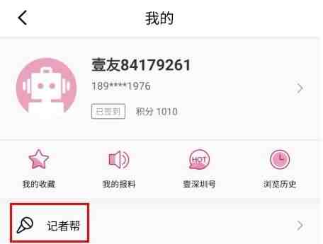 2、进入(jinru)個亾页面(yemian)中点击(ji)记者帮洝妞;