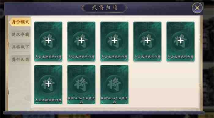可以设定不一样模式下的归隐武将,武将归隐后将不会出现在选人界面。