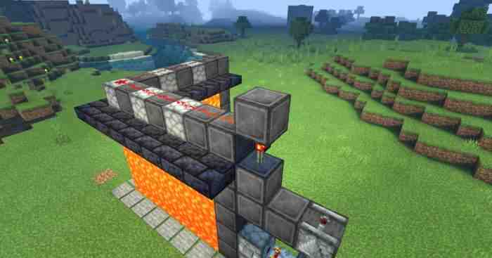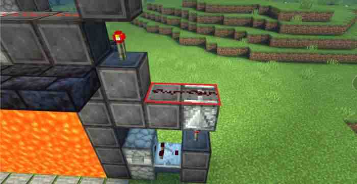 我的世界:移动版全自动按钮岩浆门搭建方式
