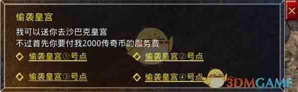 3:进攻方可以通盟重老兵前往(go to)影之道直接花费2000传奇币偷袭皇宫,偷袭皇宫有4个点可以选择进,分别对应着皇宫里东南西北四个角落,需要(yao)注意的是影之道里是可以使用召唤令的,可以直接召唤帮会里的兄弟进去偷袭皇宫。