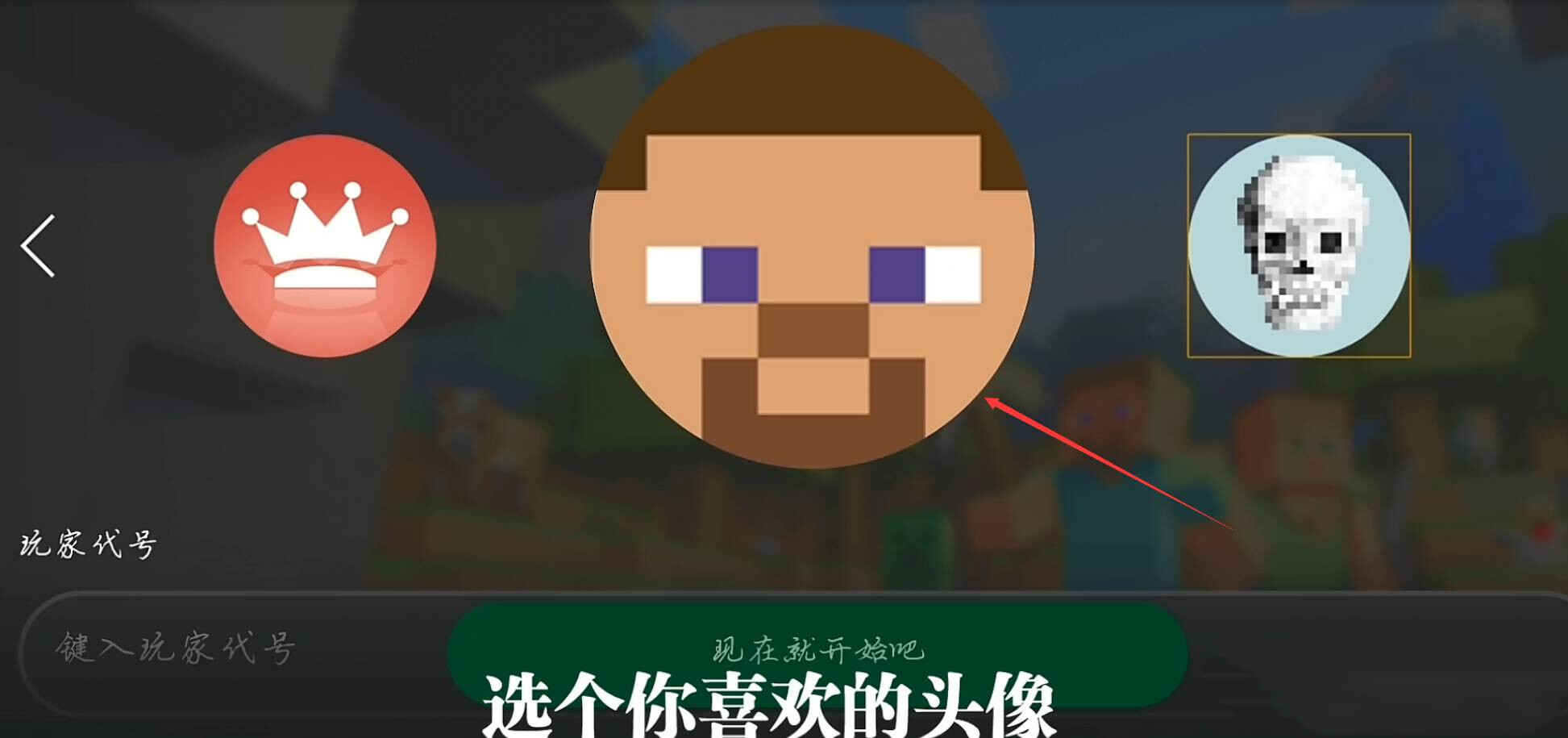 9、选择好头像后向下滑,输入游戏者代号,必须是英文,可以直接选择下面的也可以(yekeyi)自己创建(chuangjian)