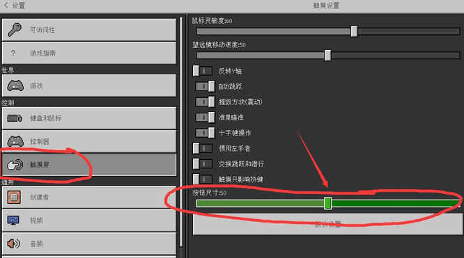 我的世界位置分享调按键大小首先我们进入游戏主界面,按下ESC进入设置,点击左侧设置按钮;首先(xian),然后点击左侧触摸屏,就可以在右侧的按钮尺寸处调节按钮大小了,下面就可以一起来了解一下。