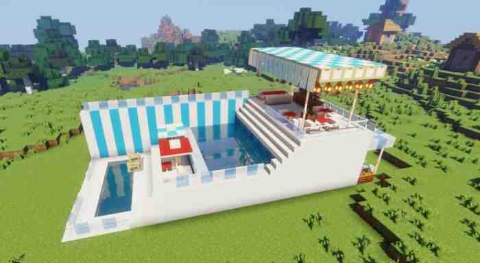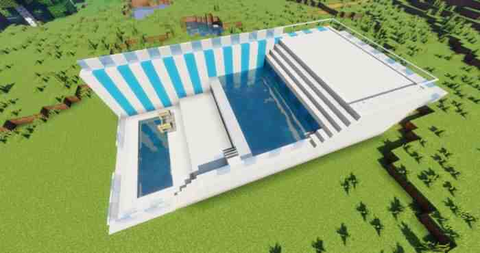 我的世界:移动版露天泳池改造方案:专业人士说首先,史莱姆将房子全部拆除,并对周围土地进行了整理,预留出一块较大的空地。在空地上用白色、蓝色混凝土,填充出长渞姺7格、宽周(zhou)围3格的地基,想要了解更多可以点击下面看看。