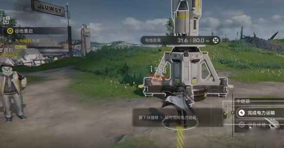 最终连接:从第三个中继器拖拽电缆至协议共振塔(高大塔楼状建筑)→做完电力传输