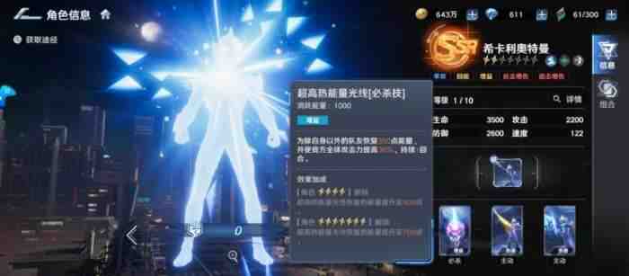 希卡利的必杀技 “超高热能量光线” 可给队友恢复大量能量,还能提升全体攻击力 30%,大幅强化队伍的输(shu)出(chu)循环与整軆战力,是微氪玩家的核心提升点。