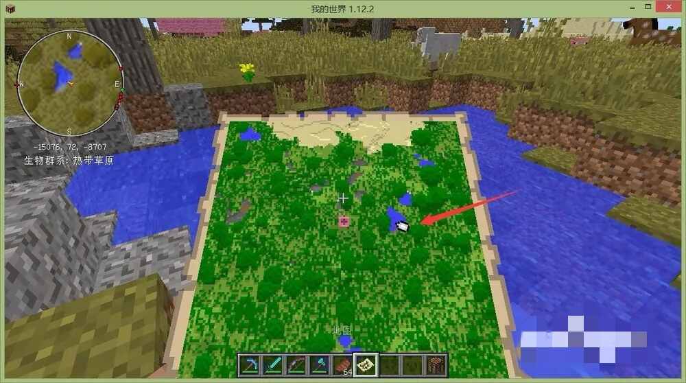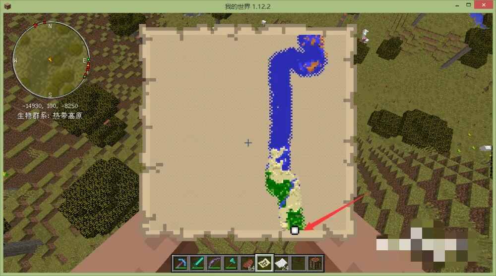 然后(Then)拿着地图,右键,让空地图显示出附近的地形(terrain),第一(yi)张地图显示的是很清晰的地貌,当然也是最小的地图。