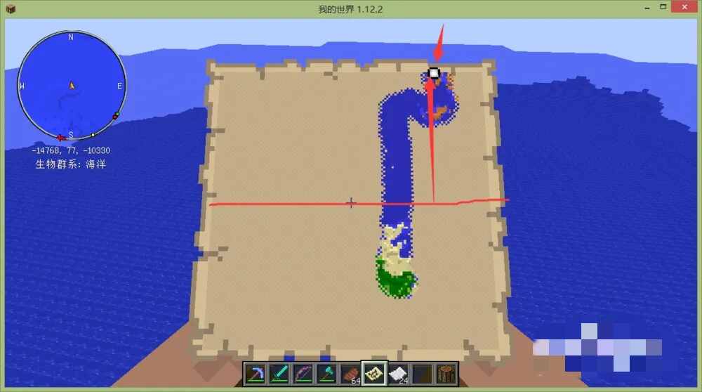 首先我们要制作(make)一张地图,原料需要纸和指南针;将指南针放置在工作台的最中间一格,其他位置(weizhi)放纸就可以合成一张地图。