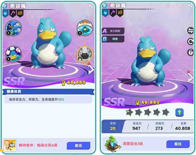 例:图一帕萌技能解锁條件,图二帕萌升级條件。