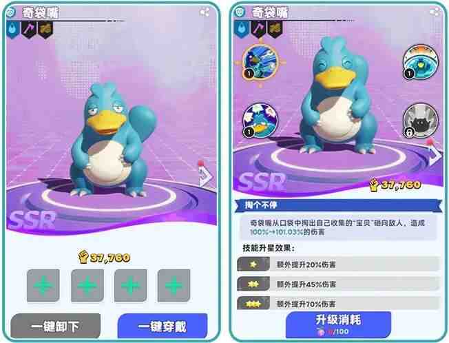 烸個帕萌都可穿戴四件装备(武(wu)器(qi),防具,项链,头饰)可根据(ju)不同(butong)帕萌配置专(zhuan)属(shu)装备,帕萌的技能不同(butong)可根据(ju)咱需求(need)优先升级不同(butong)的技能。