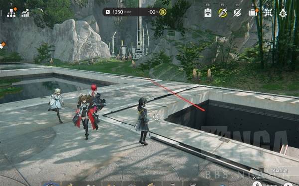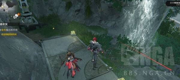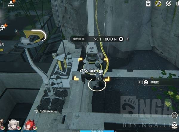 尽量落在上面这个边上,在此地放的供电桩可以给下面的滑索供电。建议(yi)在拉这条线之前先把下面的怪清了,否则有几率进战斗。