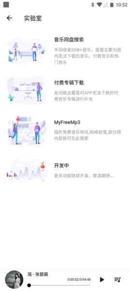 6、更绝的是还有实验室功能,针对各大音樂网站无法搜索到的歌曲,还能接入国内外和五音助手咱的音樂网盘,不管是国内还是(shi)国外再也不怕版权和谐了。