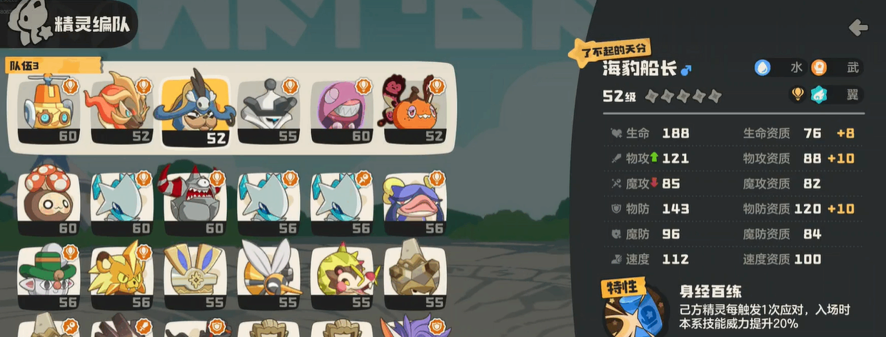其中武戏是指以皇后、海豹船长和一些宠物为核心的队伍,在战场上主要是以积累被动层数而提升双攻或者是双抗技能的,队伍成长的后期将会帮助玩家(jia)轻松实现(shixian)高强度技能的爆发(fa)。雨天是通过(tongguo)特定的天气手触发(fa)天气状态,并且在回合制战斗中以持续多个回合的方式噭萿特定效果的①種作战状态,彩碟鲨便是天气手中的重要角色,水系技能威力最高可提升至50%。风墙具有着强大的防御性技能,在关键时刻能够为角色提供护盾的保护方式,在关键单位受到敌人攻击时可以选择使用。