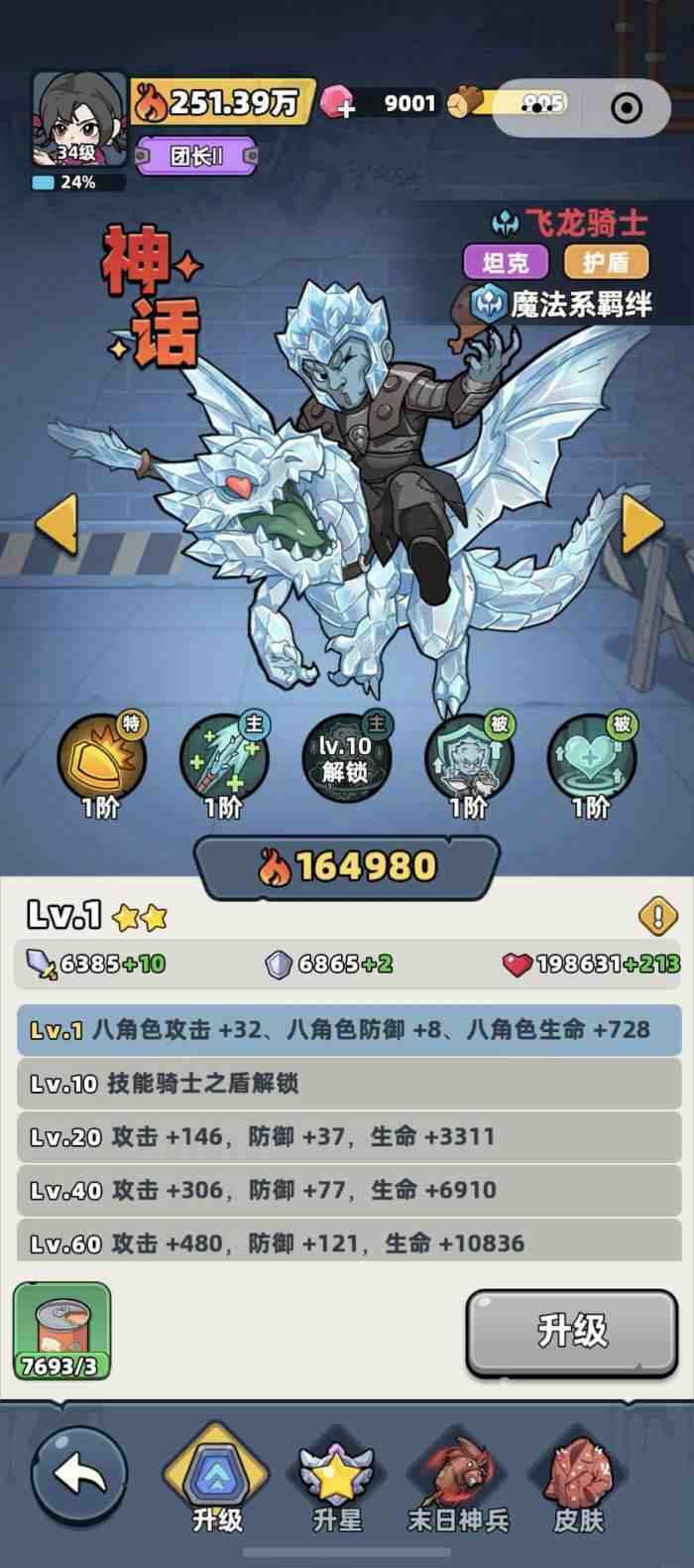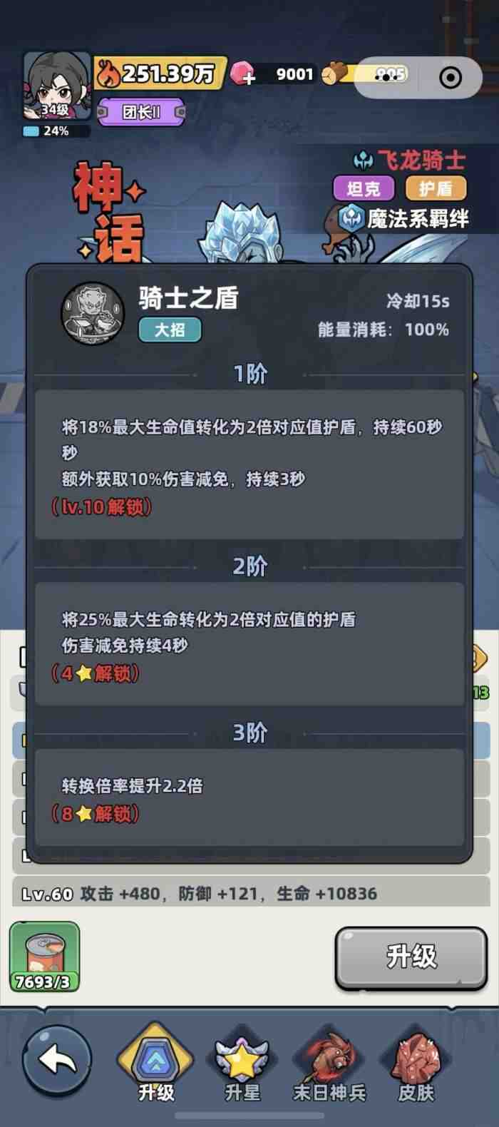 他的战斗技术一共有4个,分别是两个主动技术和2两个被动技术,主动技术分别是极夜侵蚀、骑士之盾,被动技术分别是凛冬庇护和护盾强化,其中极夜侵蚀和凛冬庇护以及护盾强化是在玩家获得(de)该英雄时就会自动解锁的节能,而骑士之盾则需要玩家将飞龙骑士给升到10级才能够(Be able to)解锁。