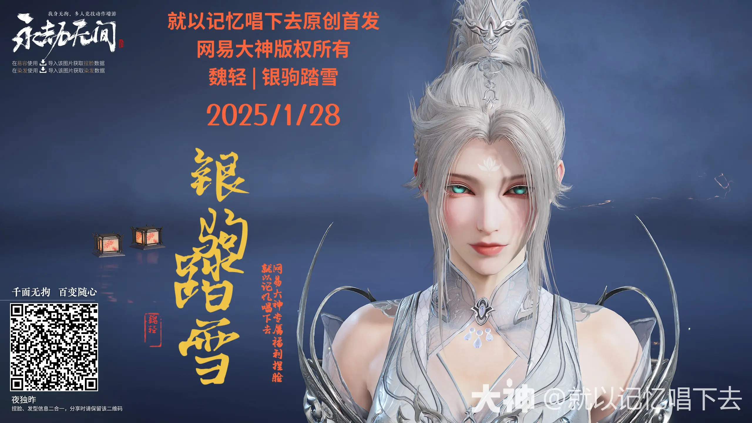 永劫无间魏轻银驹踏雪捏脸二维码一览【魏轻捏脸x银驹踏雪】 | 免费(free)数据(ju)分享(xiang)----转眼这个月又要过去了