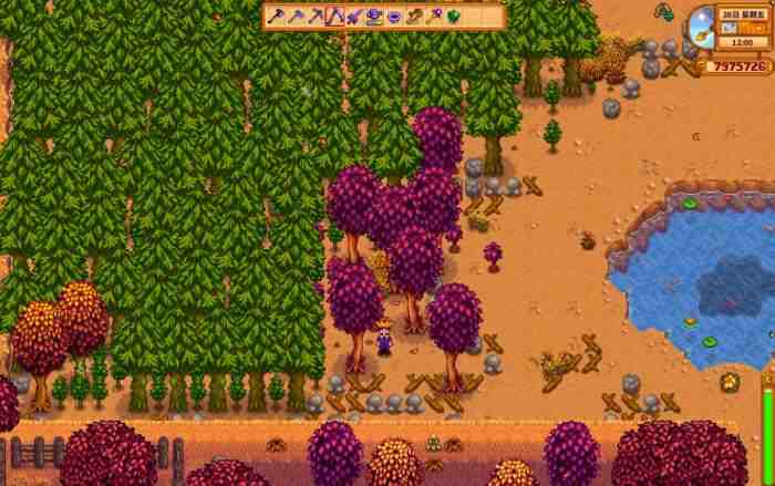 星露谷物语小树林建造方法在农场建造小树林有几个优势,一个是可以当做伐木林来快速囤积木头。第二个事会很方便挂树液采集器和蘑菇树桩,下面的内容大家可以和本站一起来了解。