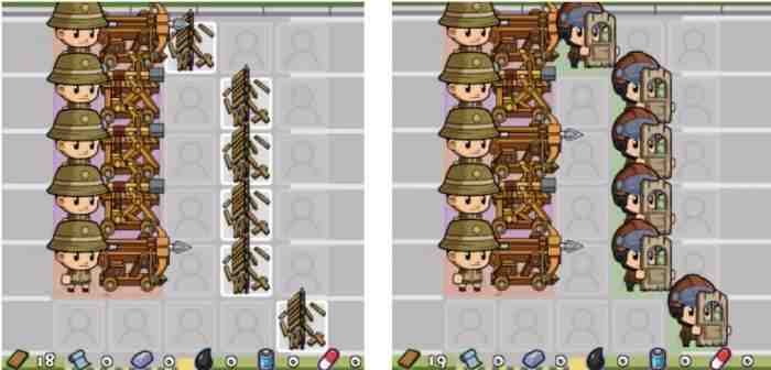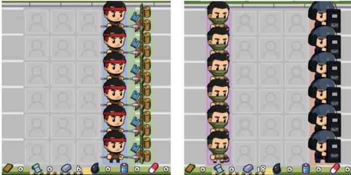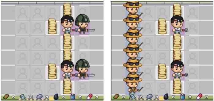 這樣摆放两个(two)“橙色士(shi)兵”一(yi)般能轻柔打过100左右(about)的關卡(最好是半感染者)