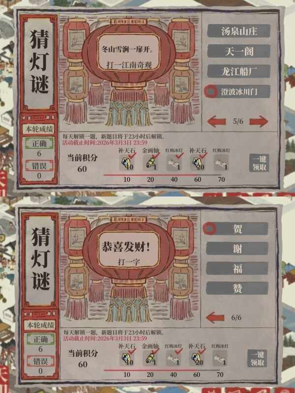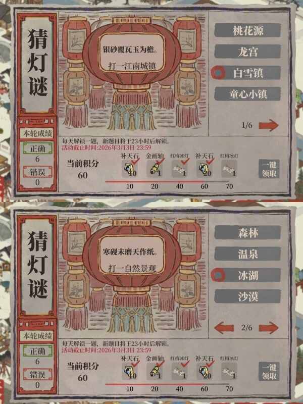 江南百景图2026年2月猜灯谜活动正确答案