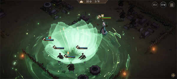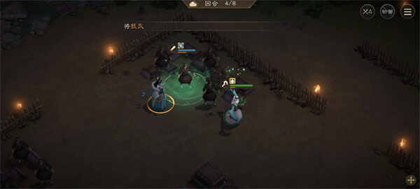 华佗怒气大招给右下,卡好地图位置(zhi),大招点空地距离,一会第三回合需要华佗跑左上。蔡炎怒气左下角群体。