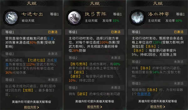 太史慈的天赋【挽弓贯阵】能为自身和赵云同时提升闪避率,并补充一定的队伍输出。