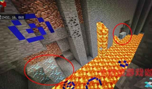 在坐标位置(Location)为:2432、16、868的位置(Location),莪們就来到(come)了另外一个大峡谷,在这里发现了丰富的钻石资源,一共是8块,这下钻石也有了。