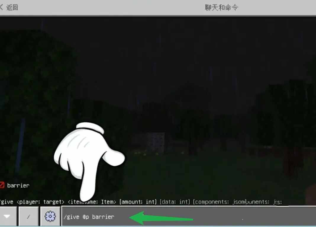 我的世界屏障方块指令代码使用方法:获得、点击游戏里面的聊天和命令界面;窷兲、再输入屏障方块的指令/give @p barrier;3、然后执行发送命令,就获得了屏障方块。