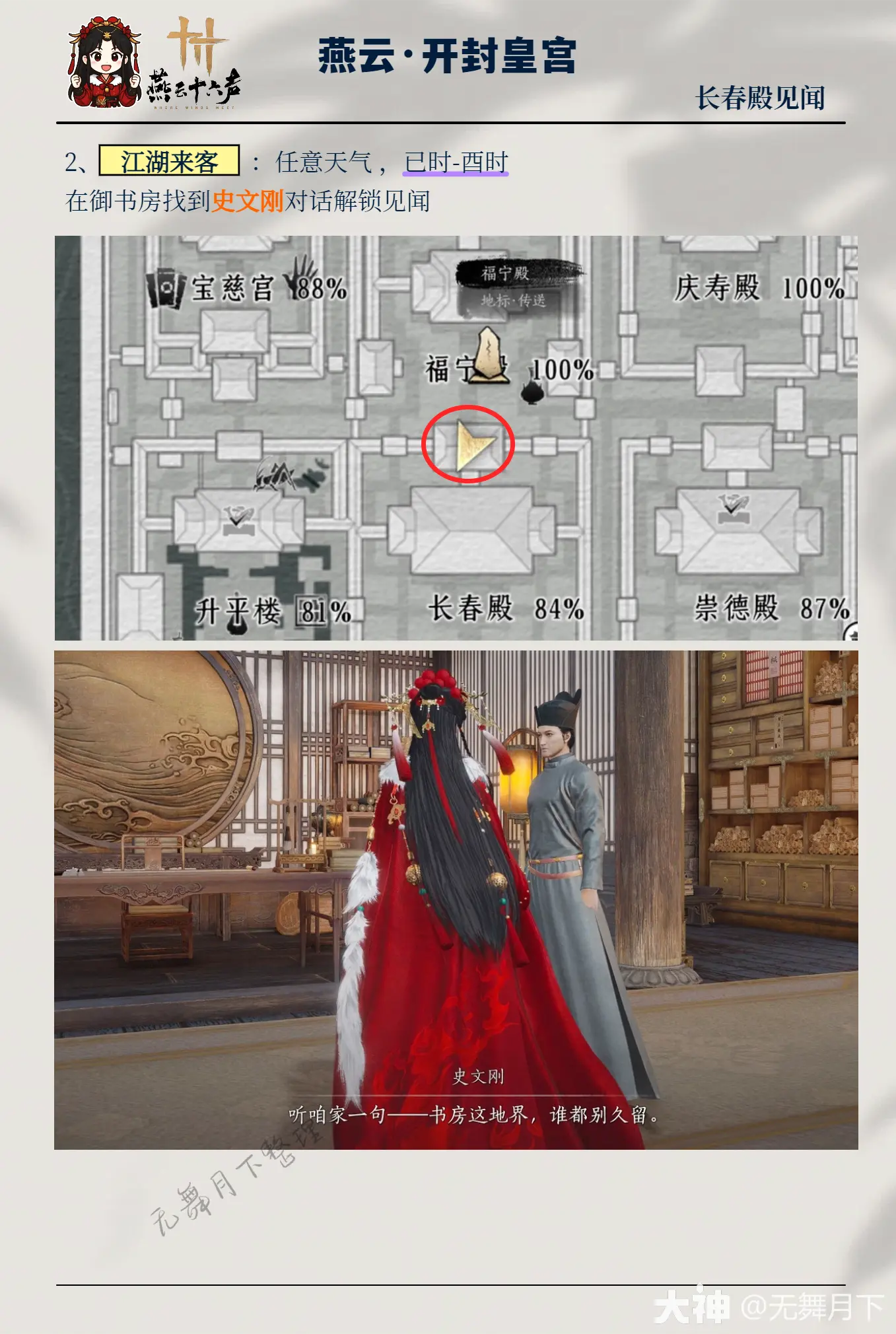 燕云十六声开封皇宫长春殿见闻全收集燕云开封皇宫【长春殿】5个见闻糼畧。