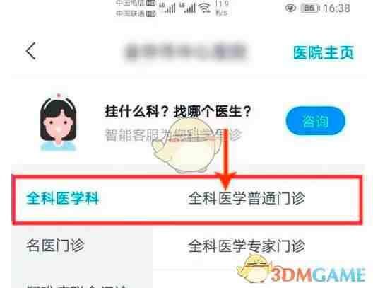 3、點击选择(hoose)挂号科室门诊。