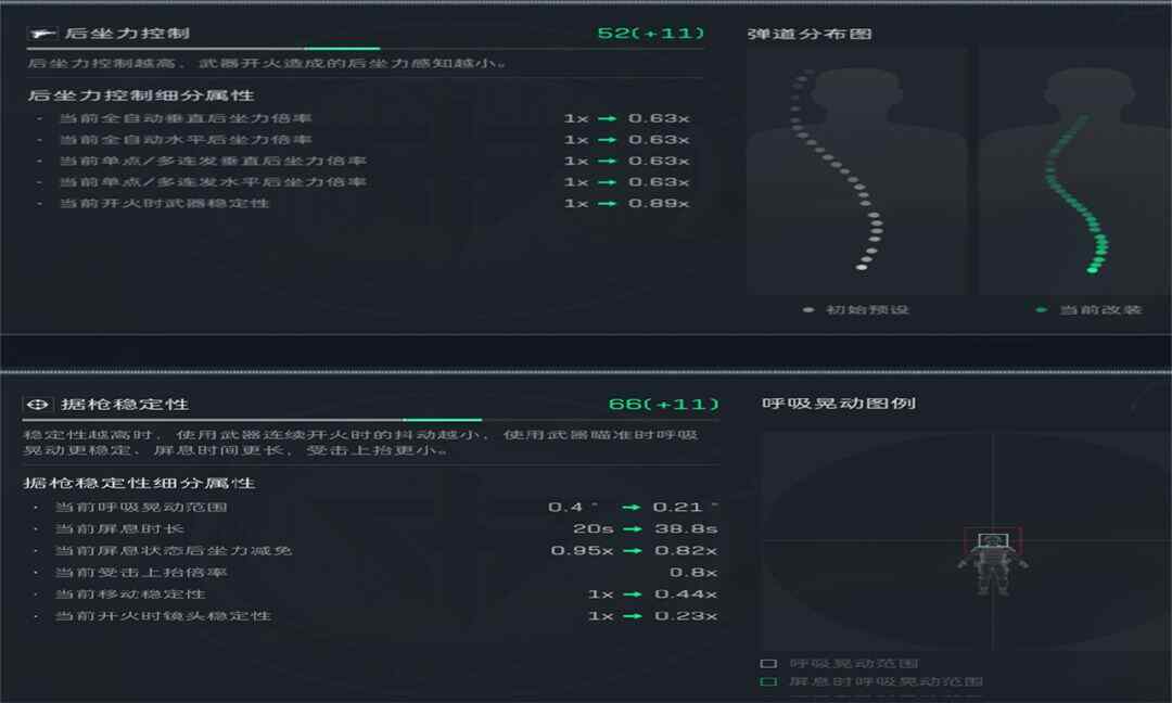 从图中可以看出,这把枪经过改装稳定性有所提升,弹匣容量也提升至60发,这把枪在续航方面以及连杀方面是很强的,但是换弹速度有点慢,需要找到合适的隐蔽点,总体来说这把枪玩起来还是很(hen)不错的,值得(worth)一试!