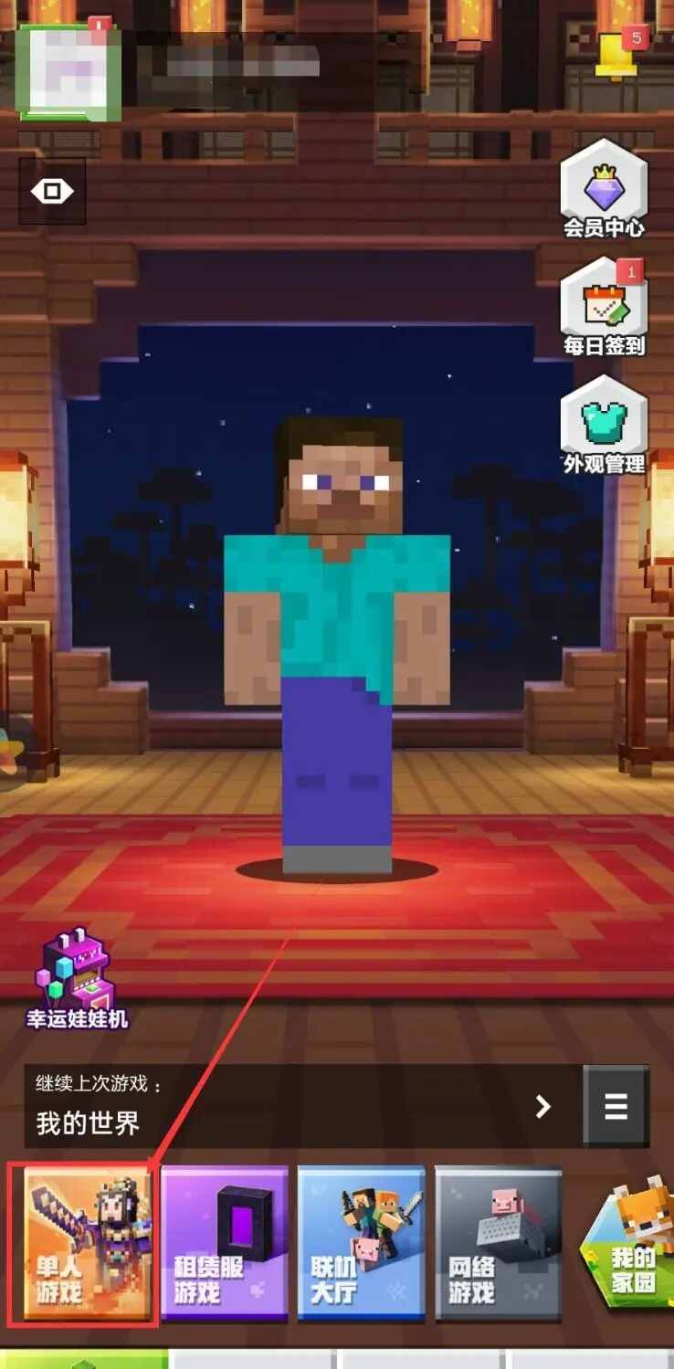 启动(qidong)我的世界,进入游戏主界面,挑下方的【单人(danren)游戏】。