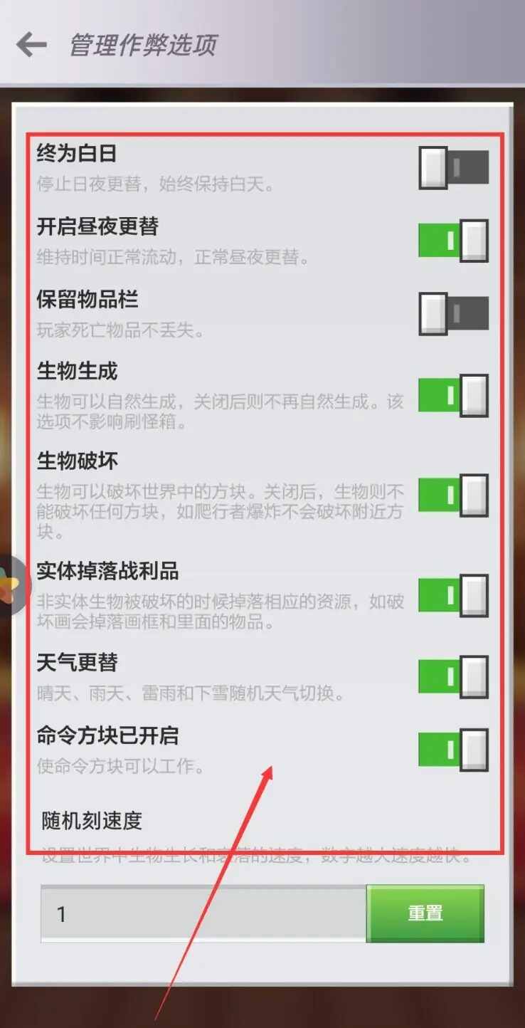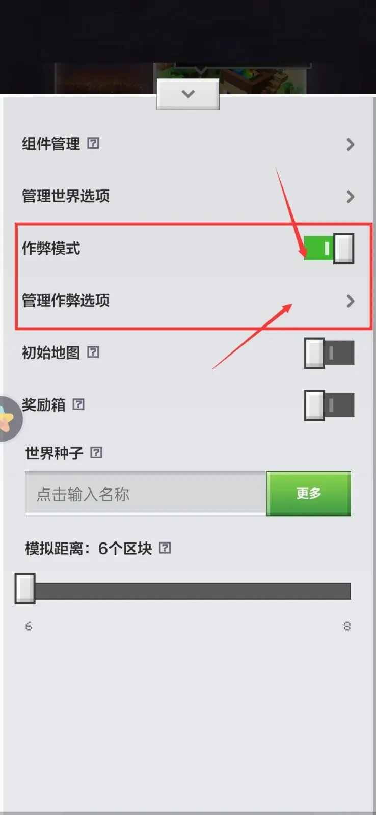 把作弊模式的开关打开,然后(hou)點擊【管(guan)理作弊选(xuan)项(xiang)】。
