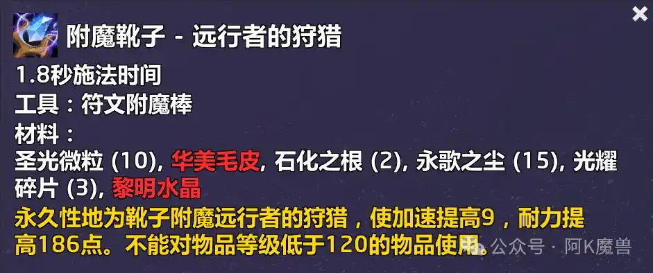 魔兽世界附魔靴子远行者的狩猎配方怎么获得附魔靴子-远行者的狩猎:狩猎供应商构造体瓦诺雷用500个痛苦残渣和150工匠之魄兑(dui)换配方;