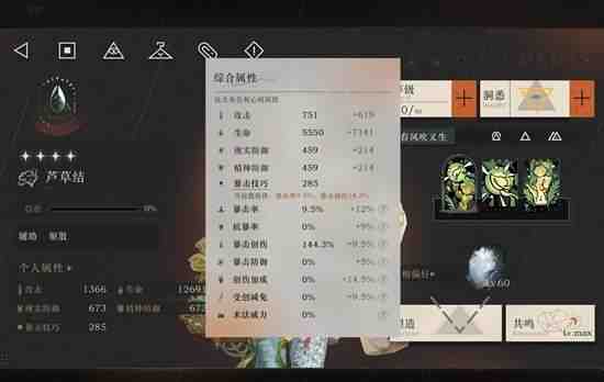 共鸣调频如果(if)草是6星阔以用恍然惊诧有很多(very much)佷恏的生命提升。可惜草是4星所以我们选(xuan)择(ze)提升生命和双防的纵情狂想。