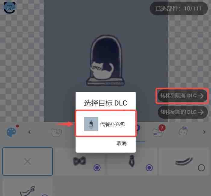 (一)如果你想将这些部件转移到已经从创建好的DLC,请在选择完毕后点(dian)击界面右侧的“转移到现有DLC”。