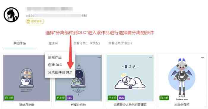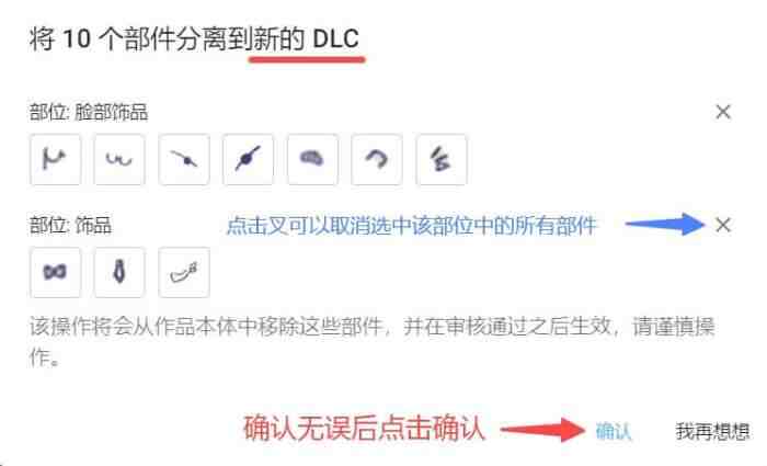 不要忘记将增加了部件的DLC提交审核,被转移到该DLC的部件将会在DLC作品通过审核之后发布。