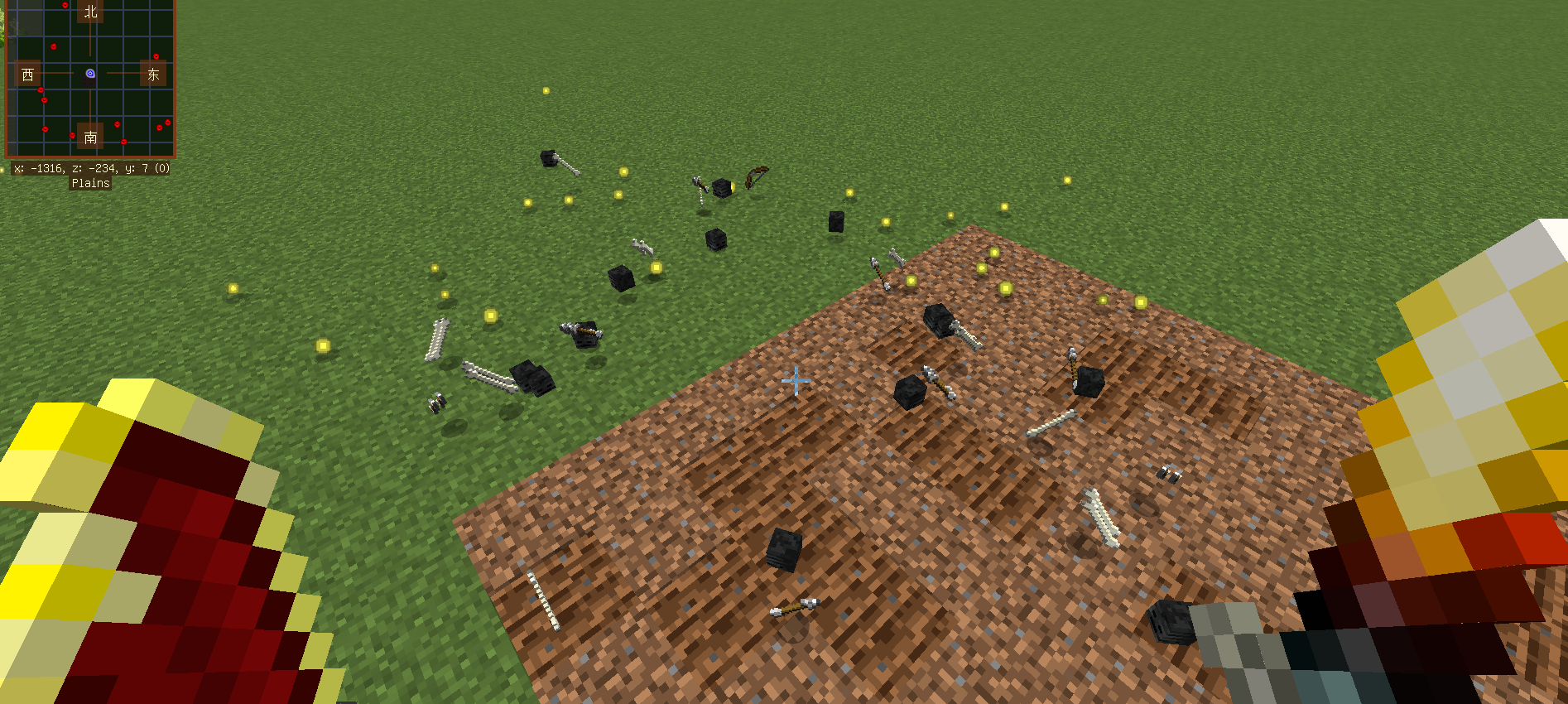 右键树叶可以大面积采集树叶(会掉树苗),右键原木可以大面积砍树,右键泥土/草方块(fangkuai)可以大面积锄地,右键对空剪羊毛。