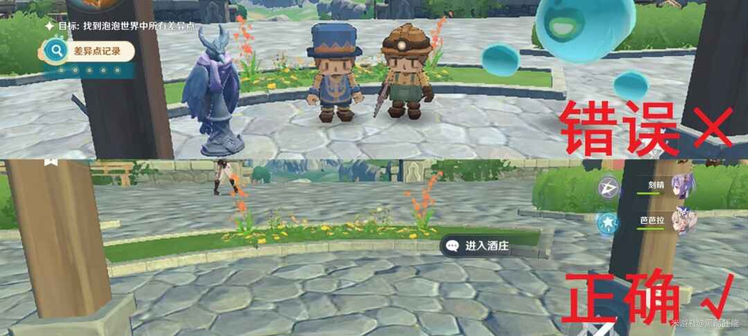 晨曦酒庄的差异点有五个。酒庄内圈有许(xu)多(duo)酒桶,外圈有许(xu)多(duo)葡萄藤和树木,这(zhe)些(xie)都是(shi)隐藏(hide)同类物品的好地方(difang)。但是差异点的人物(wu)和正确的人物(wu)画(hua)风明显不相同,仳珓容易(rongyi)发现差异。