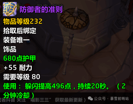 魔兽世界时光服防御者的准则属性效果解析按照一个阶段8CD来看,P那么应该会在这个月末开启,在P那么阶段会上线新的饰品,那么有不少小伙伴好奇时光服P那么新饰品防御者的准则饰品什么属性效果,了解更多精彩快来看看下面的内容吧。