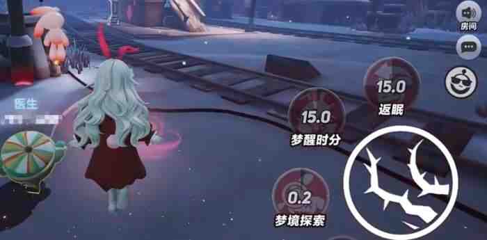 第二个技能叫梦醒十分·返眠,听名字可能有点绕,但效果其实很直接。桃乐丝能和兔子小姐,或者兔子陪伴的角色建立连接,然后自己可以瞬间飞到兔子那边,或者把兔子召回到身边来。適個技能在追击的时候,特別好(hao)用(yong),假如兔子在地图另一边,发现了逃生者,桃乐丝直接传送过去就行,省去了跑图的时间,追人效率一下子就上来了。