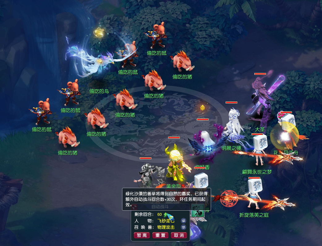 本次植树节环任务难度相对简单,怪物无明显抗性,奖励方面(aspect),前 80 环为双倍,81-140 环为 1.4 倍,141 环后无奖励。每轮环任务必定获得1个“未筛选的树种”,环任务中自(zi)动回合上限将变为60。