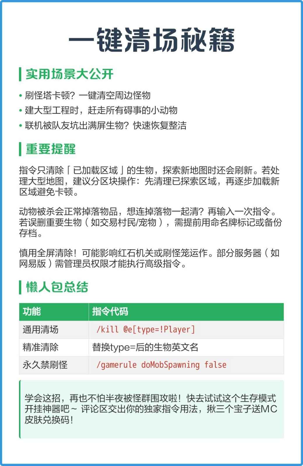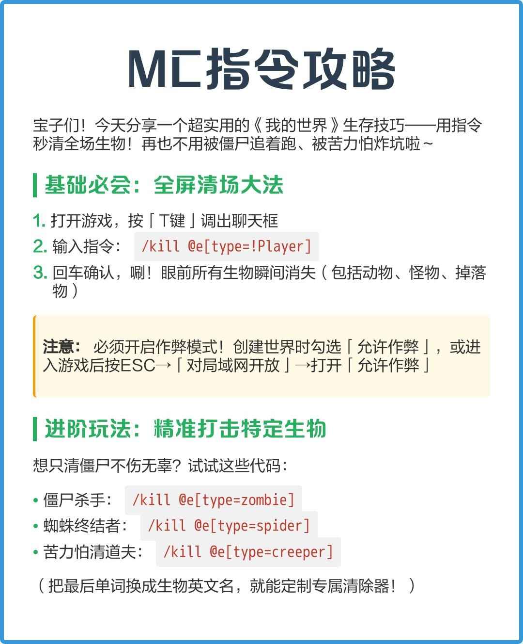 详细答案:MC指令攻(gong)略:一键清场秘籍