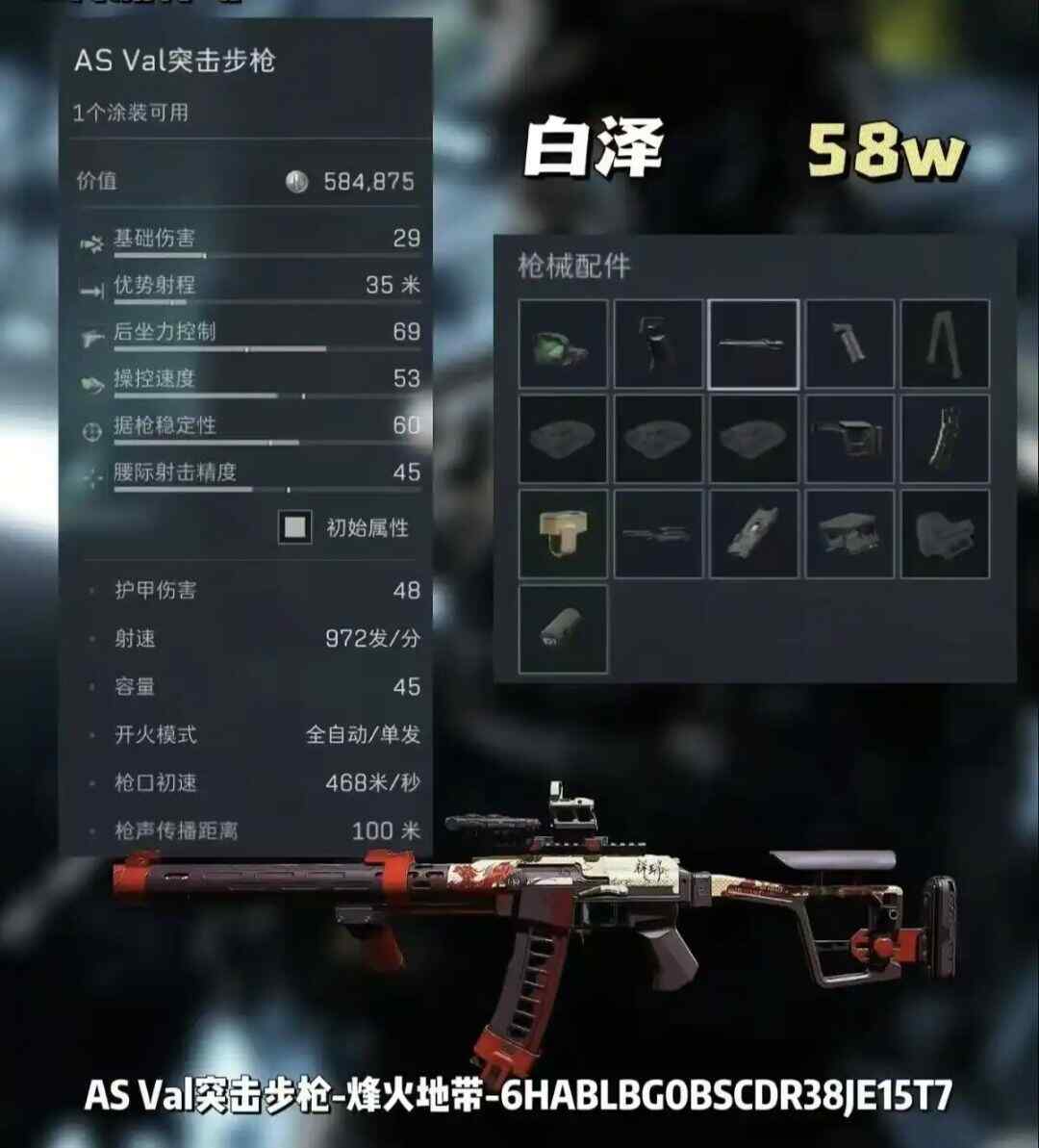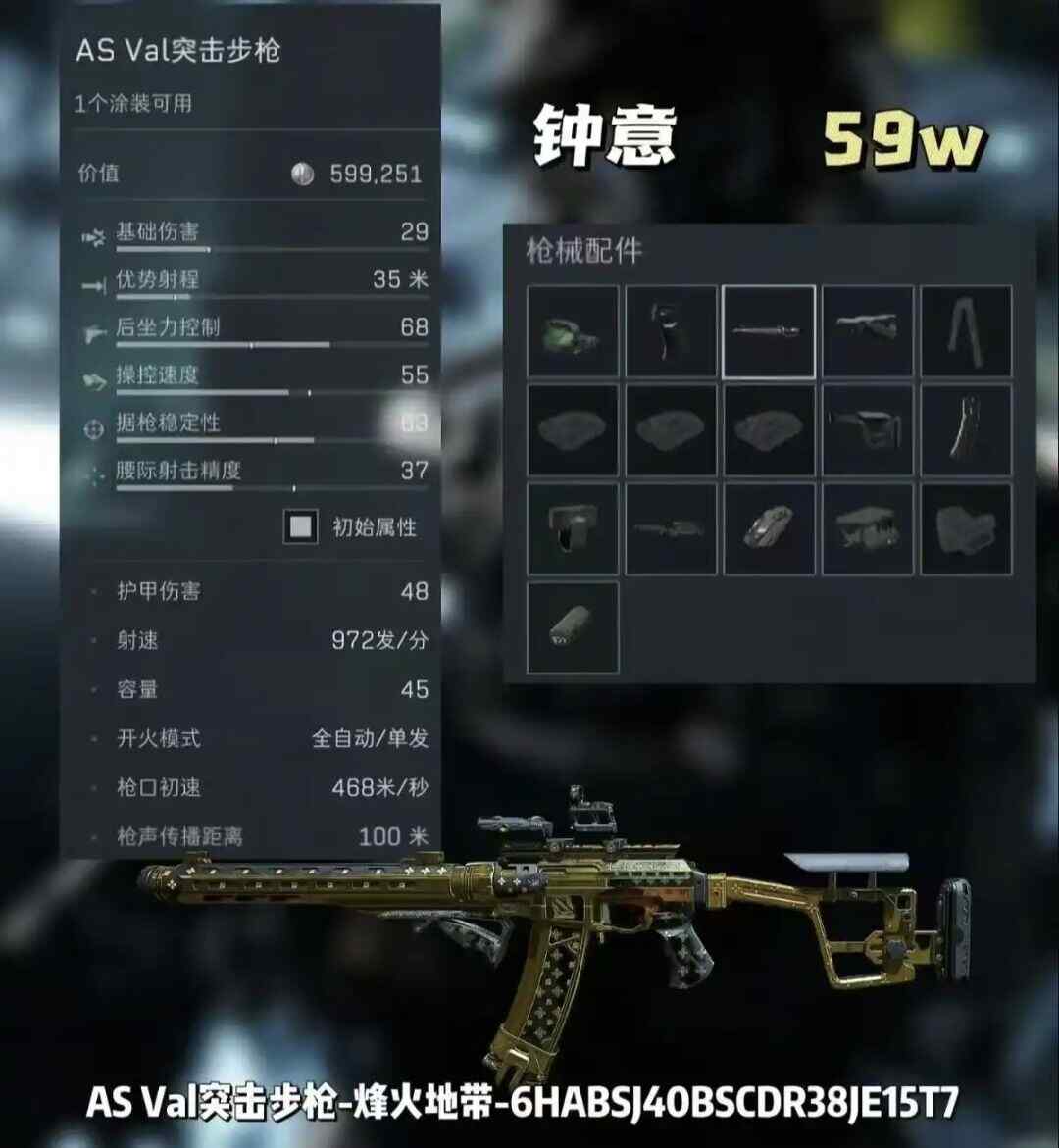 改枪码: AS Val突击步枪-烽火地带-6HABLBG0BSCDR38JE15T7