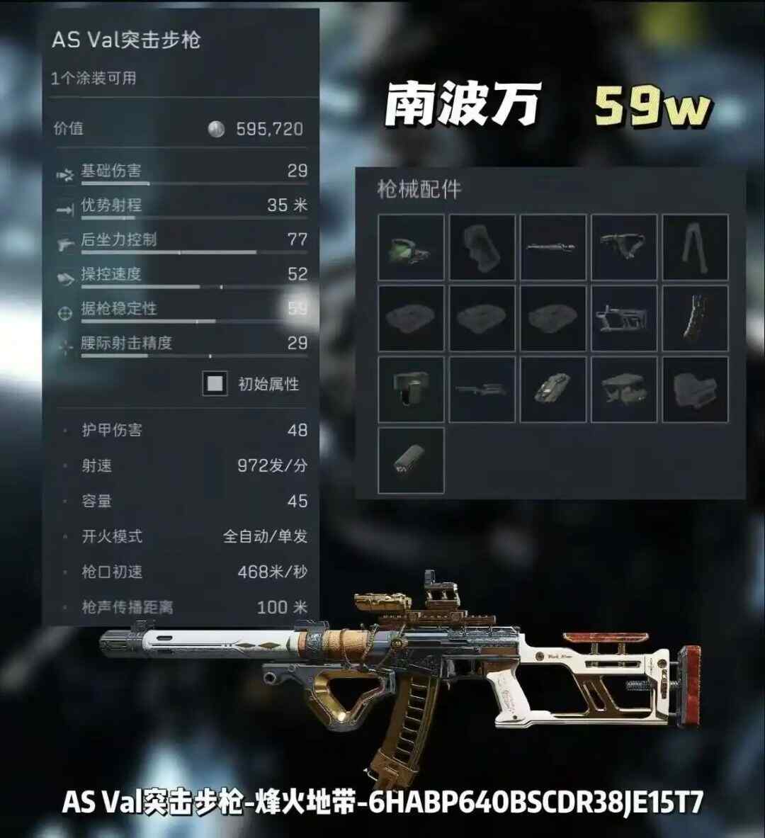 改枪码: AS Val突击步枪-烽火地带-6HABQC00BSCDR38JE15T7