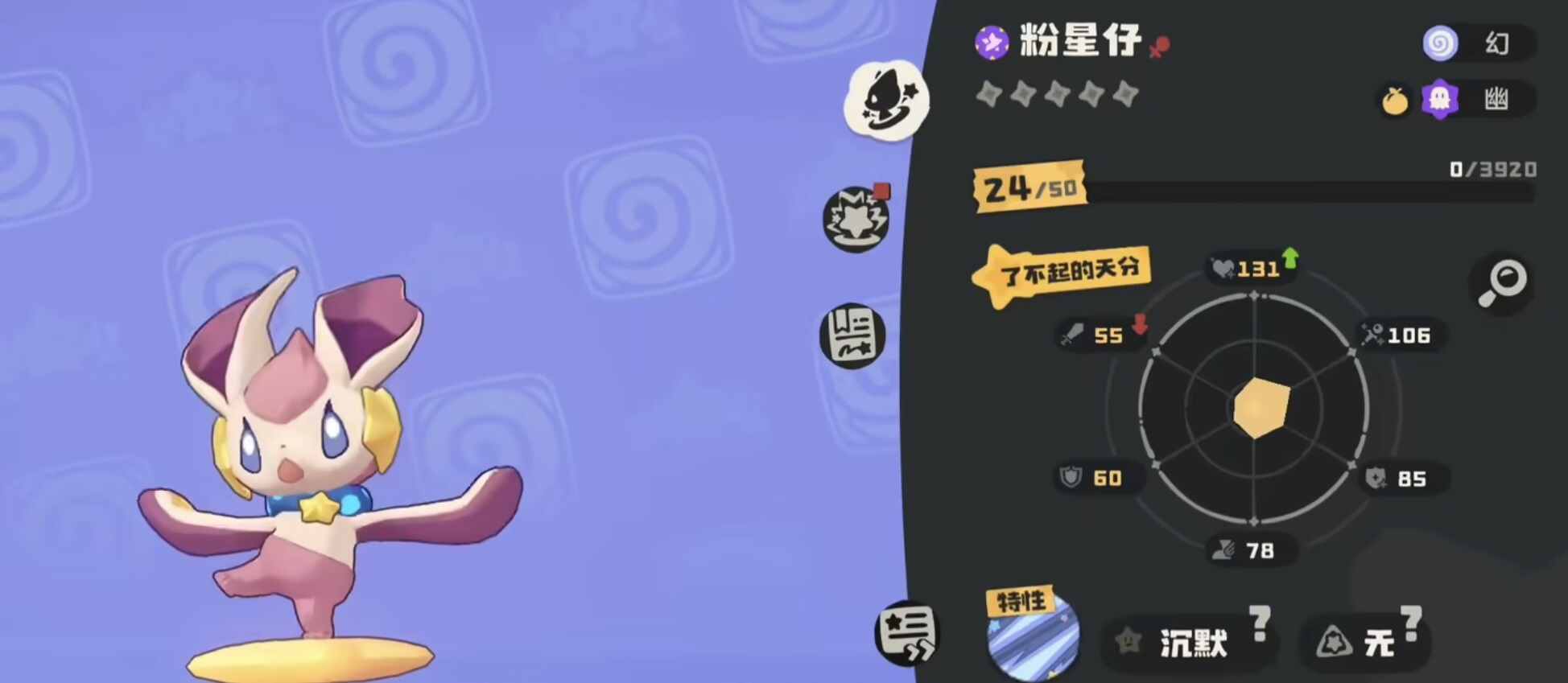 获取落陨星兔的前提是先捕获基础形态——粉星仔。推荐前往月牙湖岸、潮汐洞或王国监狱三处地图(tu)进行捕捉,且需特别注意时间条件:夜间出没概率显著提升,建(jian)议安排在游戏内夜晚时段进行刷怪。粉星仔为光系精灵,尚未具备幽系特性,因此后续必须(must)完成血脉转换方可解锁目(mu)标(biao)形态。