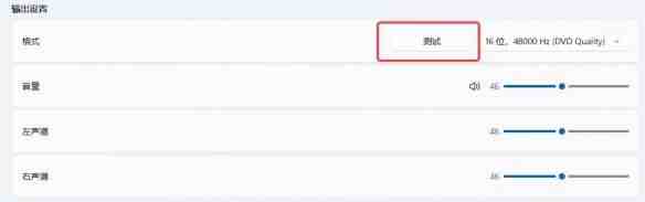 然后点击“测试”,即可检查耳机输出声音是否正常